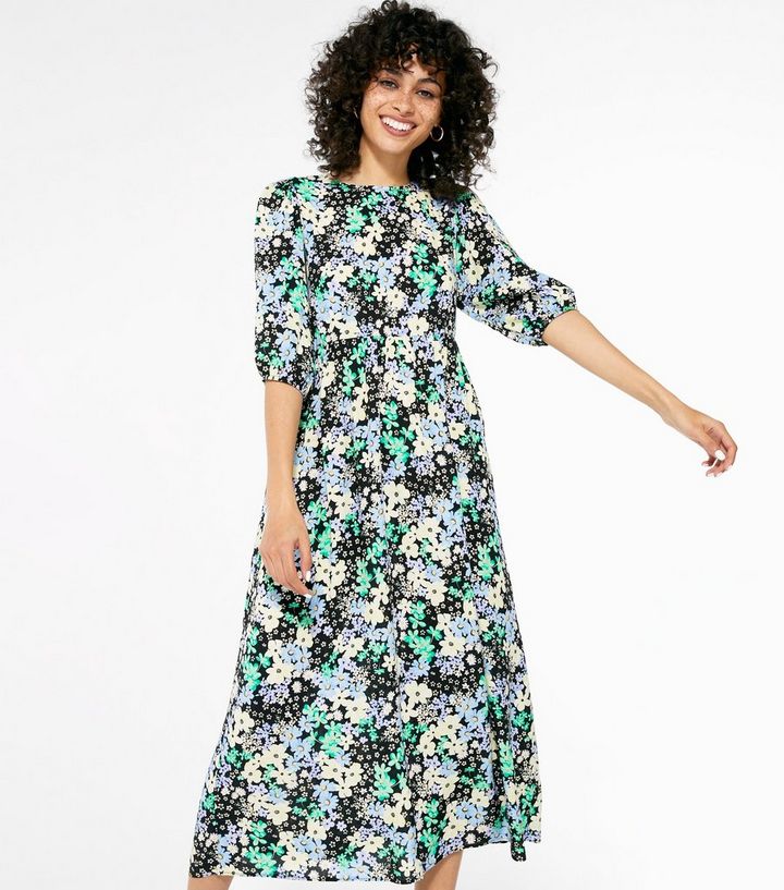 Blue Floral Smock Midi Dress New Look