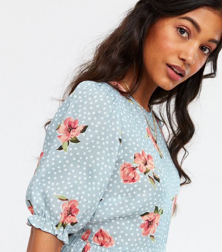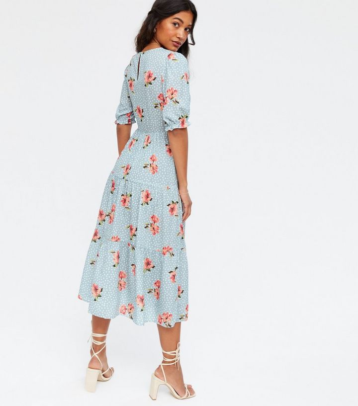 Blue Floral Spot Tiered Smock Midi Dress New Look